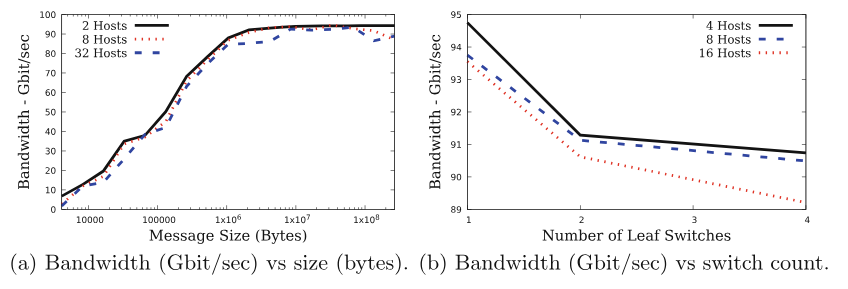 - 단일 계층 스위치에서는 메세지 호스트 수가 커져도 tree locking 시간이 거의 증가하지 않는다.