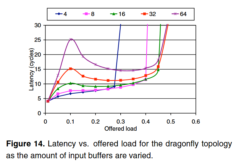 참고: Figure 8은 네트워크 성능 측정에서 흔히 나오는 그래프이므로 모양을 숙지하자. Offered load가 0일 때의 Latency를 zero-load latency라 하고, Latency가 무한대로 발산할 때의 Offered load를 throughput이라 한다.